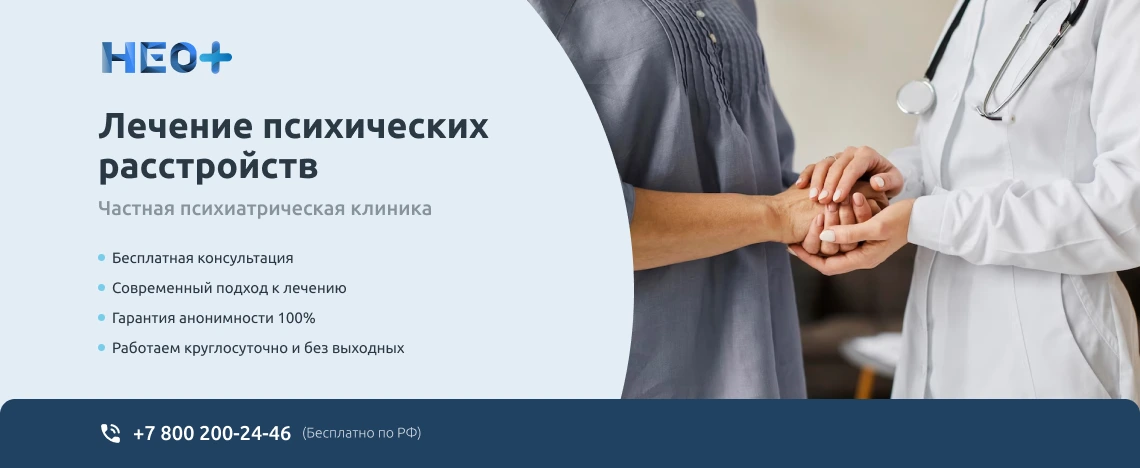 Записаться на прием к врачу-психиатру можно на официальном сайте клиники «НеоПлюс» в Стаханове или по телефону ☎️ +7 (800) 200-24-46. Звоните нам, не запускайте проблему. Мы знаем, как вернуть здоровье и покой в Вашу семью!